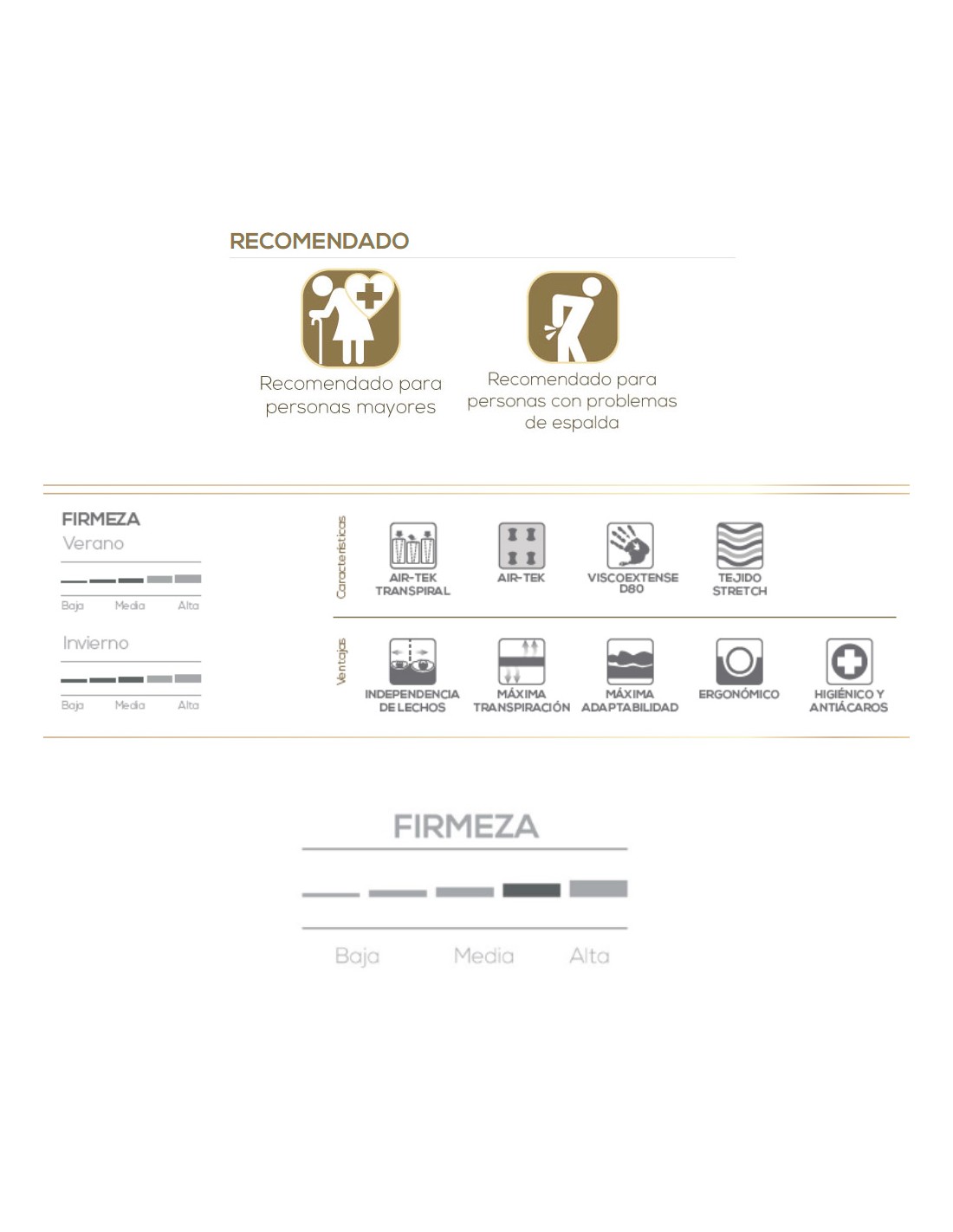 • Elimina puntos de presión, mejorando la calidad del sueño y evitando dolores musculares.
