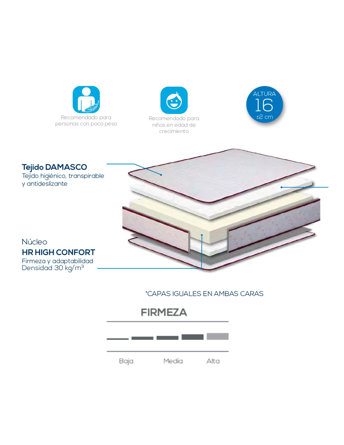 • NUCLEO HR HIGH CONFORT: Firmeza y adaptabilidad. Densidad 30 kg/m3